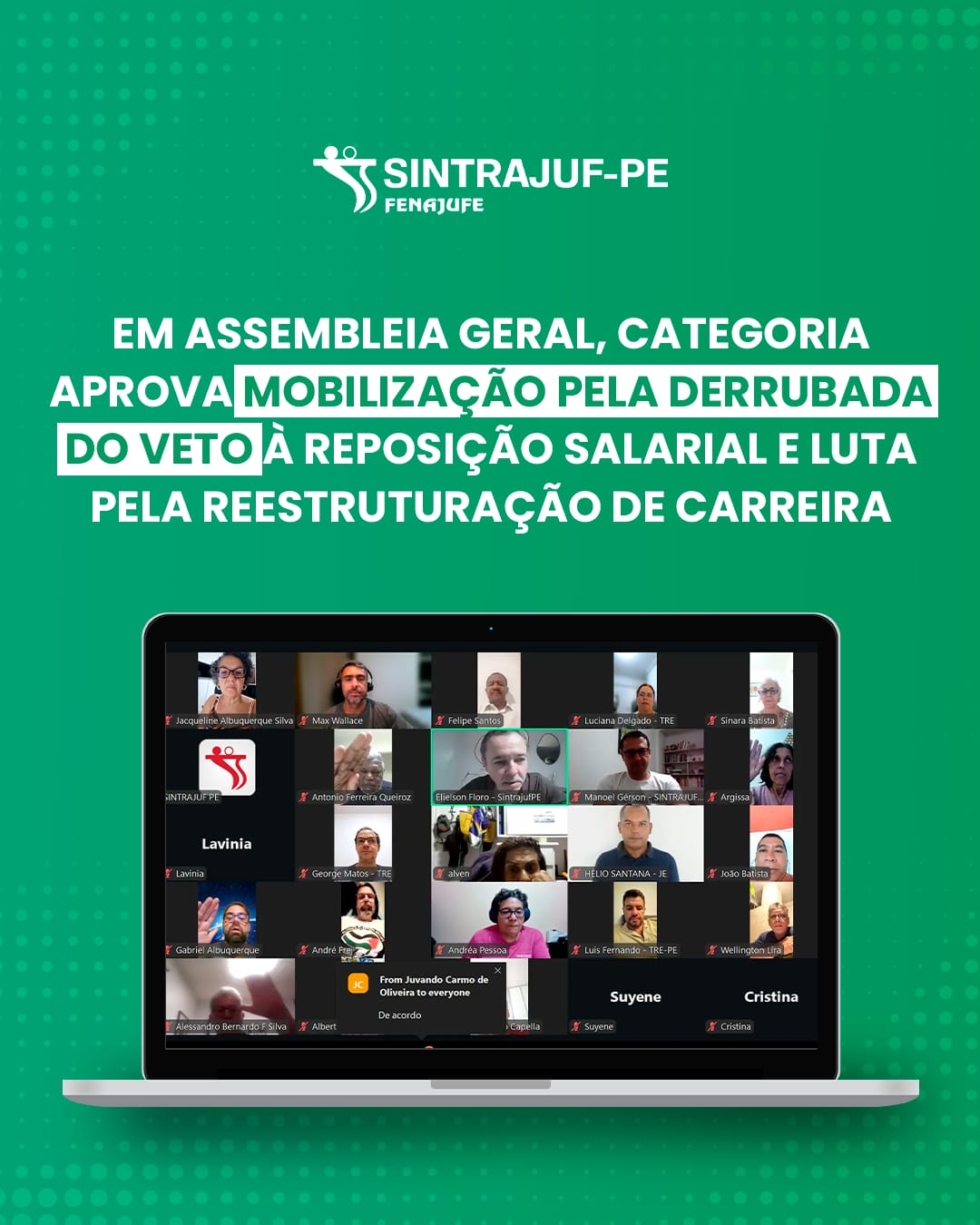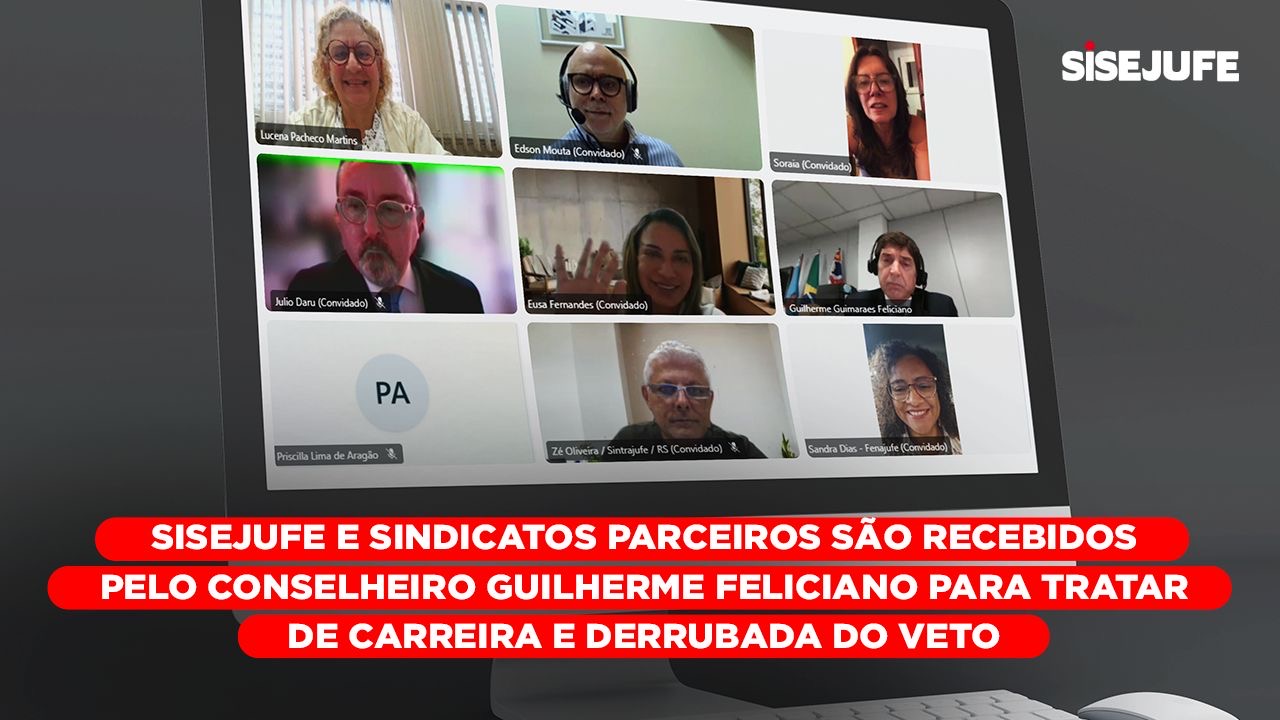 Sisejufe e sindicatos parceiros são recebidos pelo conselheiro Guilherme Feliciano para tratar de carreira e derrubada do veto