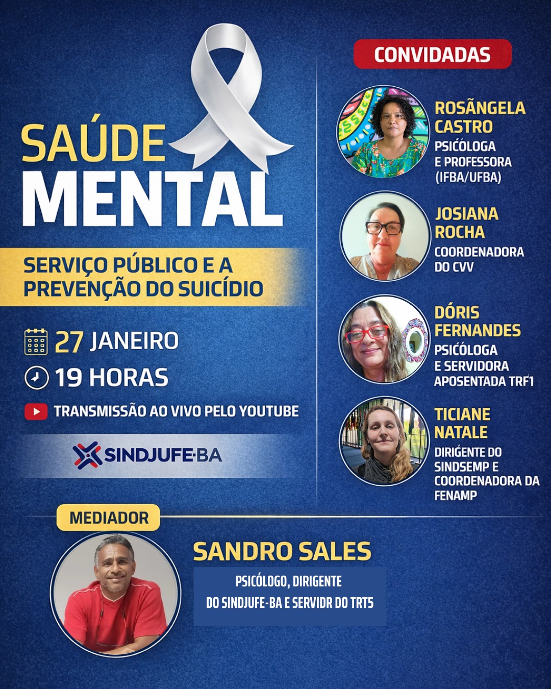 Sindjufe-BA realiza live “Saúde mental: serviço público e a prevenção do suicídio” na próxima terça (27)