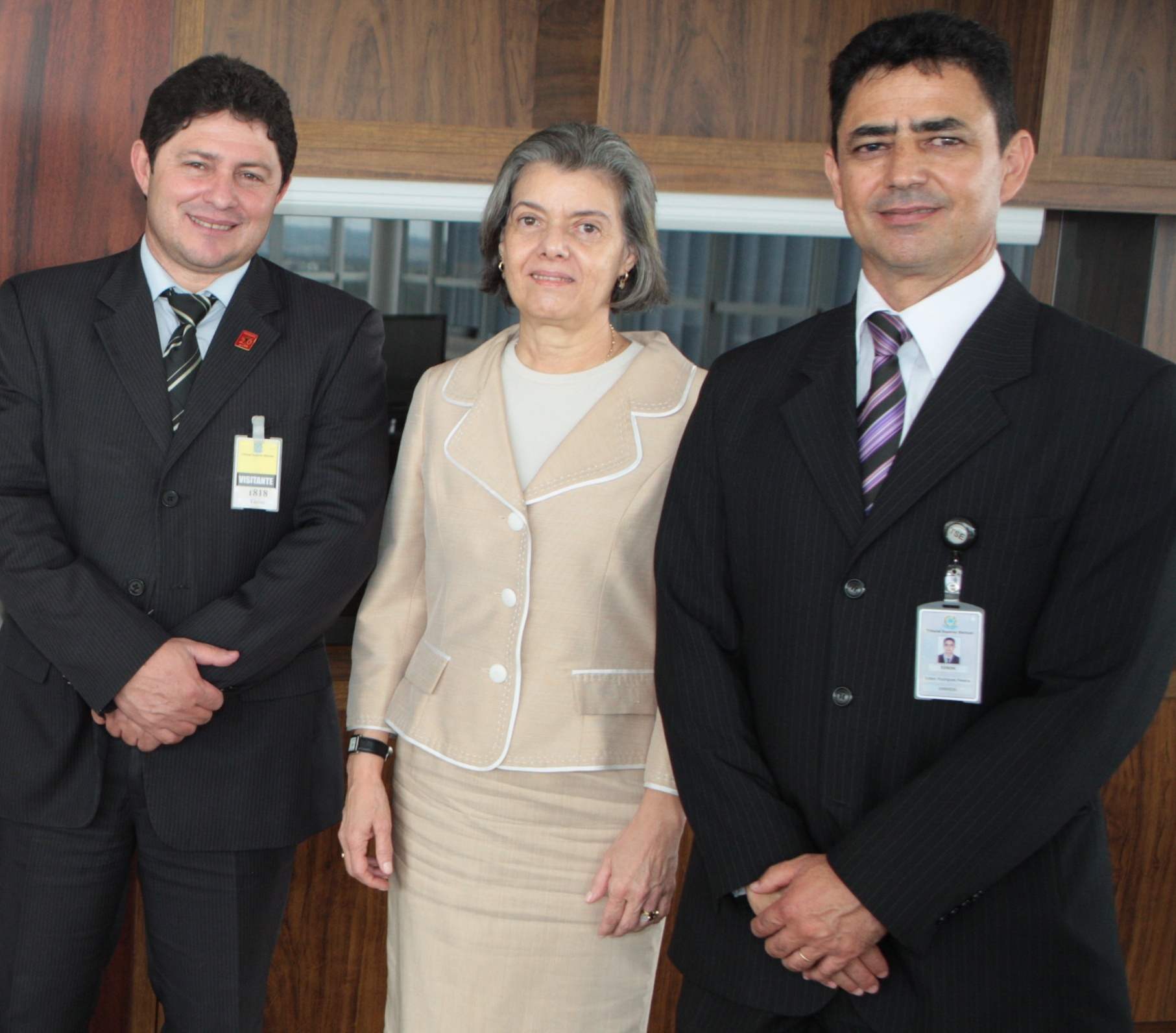 Na foto, Edmilton Gomes (Coordenador da Fenajufe), Ministra Cármen Lúcia (Presidente do TSE) e Edson Rodrigues Pereira (novo assessor de Segurança do TSE).