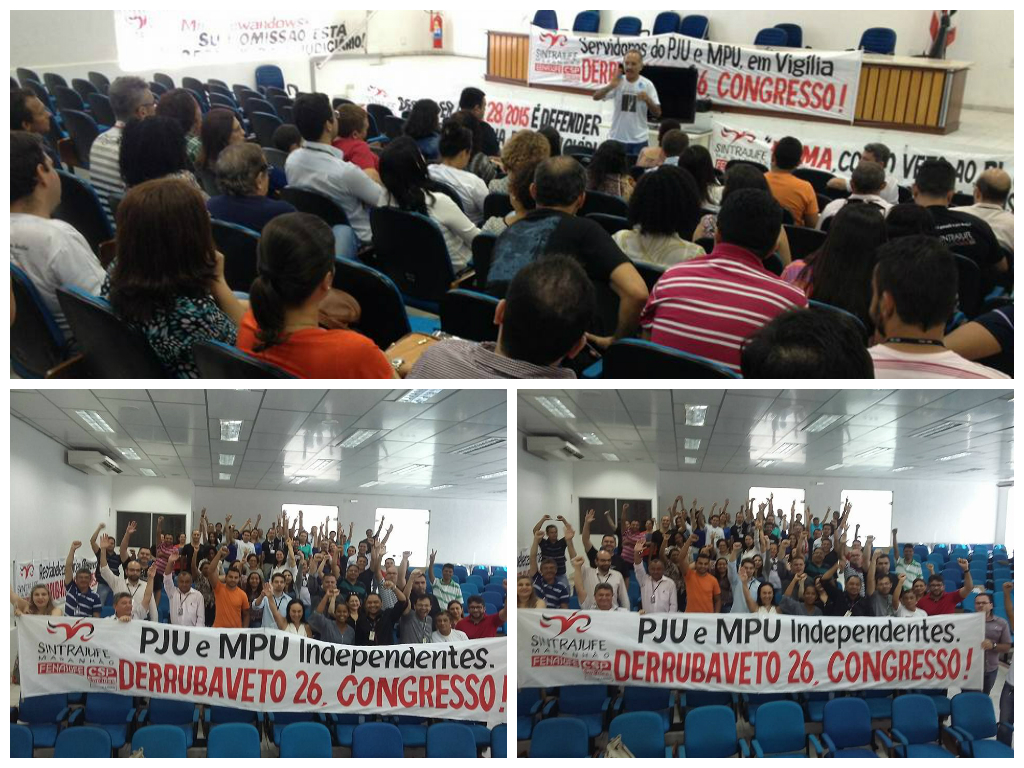 Reunidos hoje em Assembleia Geral na sede da Justiça Federal em São Luís, os servidores fizeram avaliação da manobra feita ontem no Congresso para que a Sessão Conjunta do Legislativo fosse encerrada sem apreciar o Veto de número 26, que corresponde ao veto integral ao PLC 28 – a recomposição salarial da categoria depois de nove anos sem reajuste.