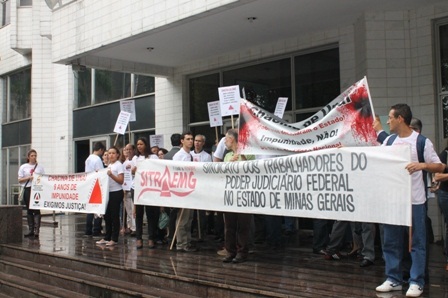 O SITRAEMG esteve presente e levou sua solidariedade às famílias e colegas dos servidores mortos, assim como juntou sua indignação à de todos os presentes. O coordenador-geral do Sindicato, Hebe-Del Kader, comparou a situação dos auditores-fiscais com a dos oficiais de justiça, em termos de riscos da função que o Estado não ajuda a minimizar. Ainda, o sindicalista disse não entender todas as varas em que o processo já esteve: “na ocasião [do crime] já havia uma Vara Federal em Patos de Minas que tinha Unaí sob jurisdição, e esse processo não foi para lá. Esse é um exemplo em que a Justiça poderia ter sido célere e não foi”, criticou. E, por falar em celeridade, Hebe-Del lembrou que, se Minas Gerais já tivesse seu próprio Tribunal Regional Federal (que seria o TRF-6, conforme prevê a PEC 544/2002), essa demora de quase uma década não existiria.