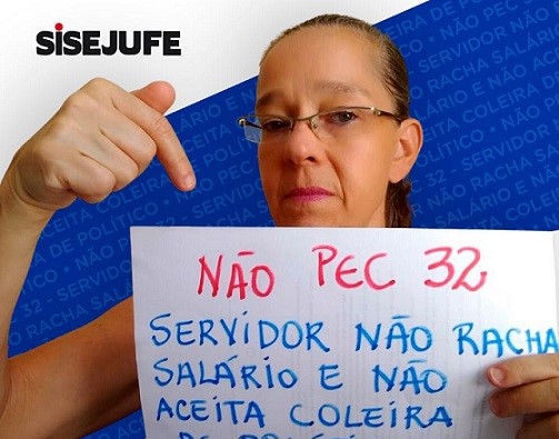 Diretores, diretoras, representantes de base e colegas de todo o Brasil enviaram ao Sisejufe fotos e vídeos com cartazes destacando frases contra a reforma administrativa e em defesa do SUS. “Essa mobilização virtual demonstrou, mesmo em meio à pandemia, toda a nossa indignação e disposição de luta no enfretamento aos ataques do governo Bolsonaro aos servidores públicos e à população brasileira, diante desta conjuntura difícil e cruel, no cenário nacional”, aponta a diretora do Sisejufe Soraia Marca. Diante do sucesso da mobilização virtual, a campanha continuou nesta quinta-feira. Veja abaixo o resultado da atividade: