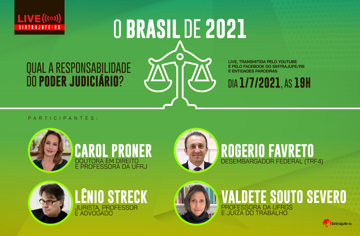 Qual o papel do Poder Judiciário nos acontecimentos dos últimos anos que acabaram por levar o Brasil à realidade atual? Essa é a pergunta que levou o Sintrajufe/RS a promover a live “O Brasil de 2021: qual a responsabilidade do Poder Judiciário”, que terá como convidadas a doutora em Direito e professora da UFRJ Carol…