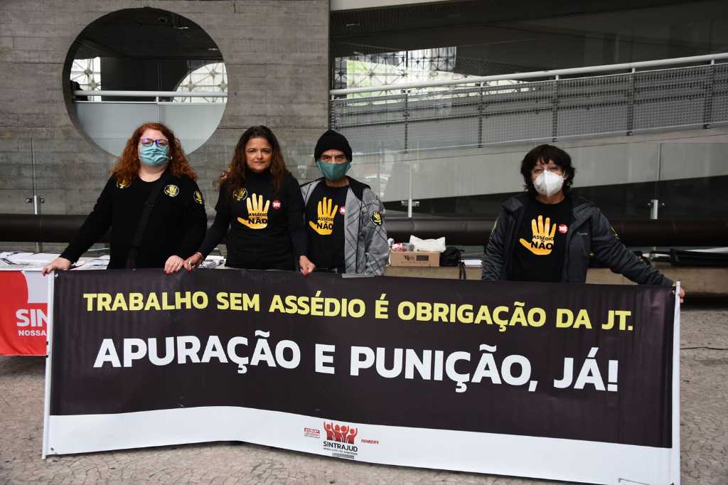 A coordenadora do Coletivo Mara Helena dos Reis – Coletivo de Mulheres do Sintrajud, a diretora Luciana Carneiro avaliou a importância do Sindicato, em parceria com outras entidades, como o Movimento Me Too e o Sindicato dos Advogados e Advogadas (SASP), para atuar contra a impunidade no TRT-2, exigindo que o juiz fosse punido e repudiando a decisão do arquivamento do caso, bem como a importância da campanha “Assédio Não”. Ela rememora o arquivamento de PADs no tribunal, criticando o que classificou como proteção, que teria sido dada pelo corregedor do TRT-2 à época, Sergio Pinto Martins a Scalercio. “Um amigo o protegeu, passou pano e mais uma vez revitimizou as mulheres que ousaram denunciar o magistrado no tribunal”, relembra.