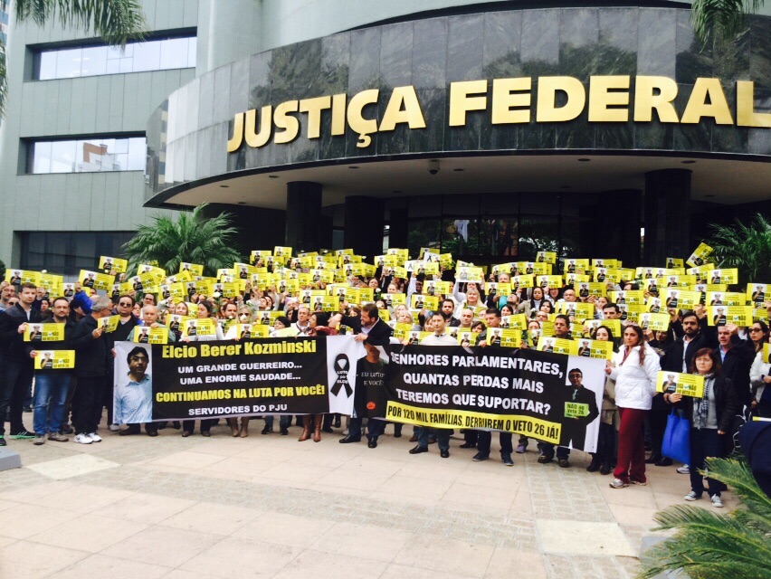 11/09/2015 – HOMENAGEM A ELCIO BERER KOZMINSKI – hoje o SINJUSPAR em conjusto com a ASSERJUSPAR suspendeu a assembleia marcada para esta tarde em virtude do ATO realizado em homenagem ao nosso amigo e companheiro de lutas ELCIO BERER KOZMINSKI, falecido no dia 06 de setembro de 2015 em BRASÍLIA – DF após ser acometido de um problema cardíaco ocorrido durante a manifestação para a derrubada do veto no dia 02 de Setembro de 2015.