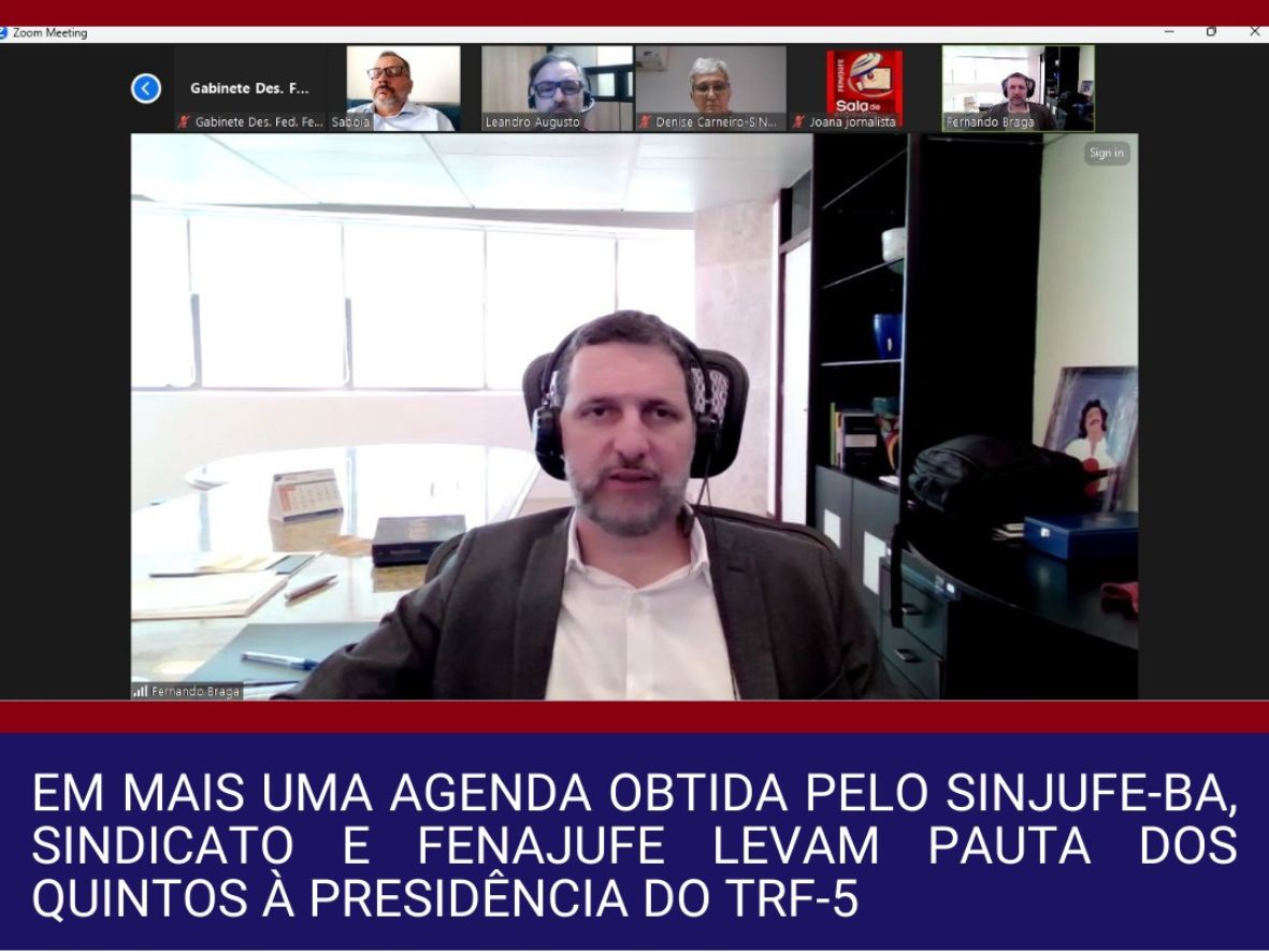 O Sindjufe-BA e a Fenajufe entregaram documento sobre a legalidade e a retroatividade dos Quintos na Lei 14.687/2023 ao presidente do Tribunal Regional Federal da 5ª Região (TRF-5), desembargador Fernando Braga. A reunião que aconteceu nesta terça (6/2) foi agendada pelo Sindicato e faz parte de uma série de encontros entre lideranças da categoria e representantes do Conselho da Justiça Federal (CJF) sobre a importância do cumprimento da referida legislação.