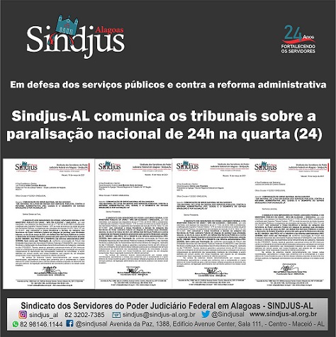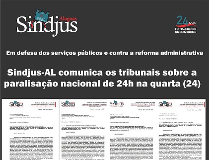 Sindjus-AL comunica os tribunais sobre a paralisação nacional de 24h na quarta-feira (24)