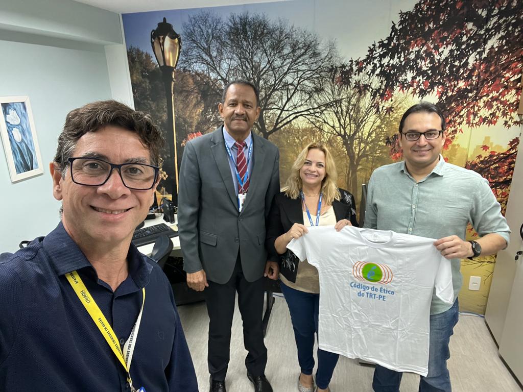 O Sindicato foi representado pelo presidente, Manoel Gérson, e pelo diretor, Felipe Santos. Pelo TRT6 estiveram a coordenadora da Comissão, Michelle Rangel, e Roberto Victor, ambos do Setor de Saúde, e apresentaram ideias para atuação conjunta no mês de maio para ampliar o conhecimento de todos sobre o assédio moral.