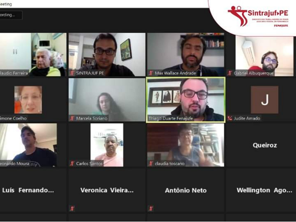Na ocasião, Thiago Duarte, Coordenador da Federação e participante dos grupos de trabalho sobre carreira do CNJ, fez uma apresentação sobre o tema e dialogou com os presentes sobre dúvidas e propostas. O dirigente nacional apresentou o histórico do Fórum Permanente de Carreira do CNJ e sua finalidade, explicando a prioridade da luta contra a reforma administrativa.