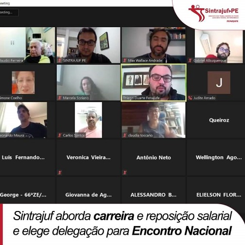Ao fim do encontro, foram eleita(o)s representantes para o Encontro Nacional, que acontece dia 7 de agosto, com servidores de todos os cargos, tribunais, gênero e raça, sendo eles: Cláudia Maria Toscano Coelho Costa, Andréa Pessoa da Silva, Gabriel Augusto de Aquino Albuquerque Filho, Luís Fernando Cavalcanti Costa e Carlos Felipe dos Santos como delegado(a)s e para observadora(e)s/suplentes, Alberto Jorge dos Santos, Manoel Gérson Bezerra Sousa, Marcela Soriano Ferreira Nunes, Adriano Clayton Carreiro Barros e Marco Antônio de Carvalho Capella.