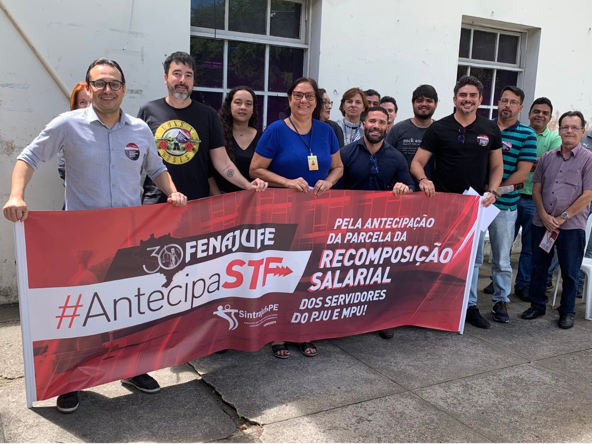 O Sintrajuf-PE realizou uma série de atividades e diálogos com a base em vários locais de trabalho e também por meio virtual como parte da mobilização da campanha #AntecipaSTF, que tem o objetivo de impulsionar o pleito da Federação de antecipação da parcela de recomposição salarial de fevereiro de 2025 para 2024.