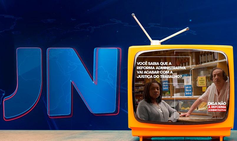 Neste sábado, 19, vídeo da campanha do Sintrajufe/RS contra a PEC 32/2020, de reforma da administrativa, será veiculado no Jornal Nacional, da Rede Globo. Serão duas inserções ao longo do telejornal, no mesmo dia em que, em todo o país, serão realizados atos por vacina, em defesa de direitos e pelo fim do governo Bolsonaro.