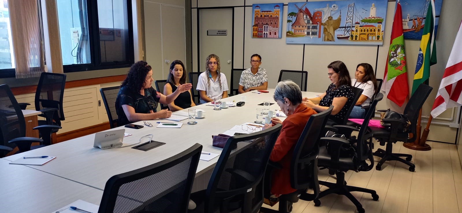 Participaram da reunião a juíza auxiliar da Presidência, Ângela Konrath, que coordena o grupo de trabalho, a presidente da Amatra12, Patrícia Pereira de Sant’anna, a juíza do trabalho substituta Zelaide de Souza Philippi, a servidora Cristina Vivan, do Saser, a servidora Isabela Barbosa, da COAJ, e também Daiana dos Santos Pereira, estagiária, e Jasmym da Rocha, jovem aprendiz.