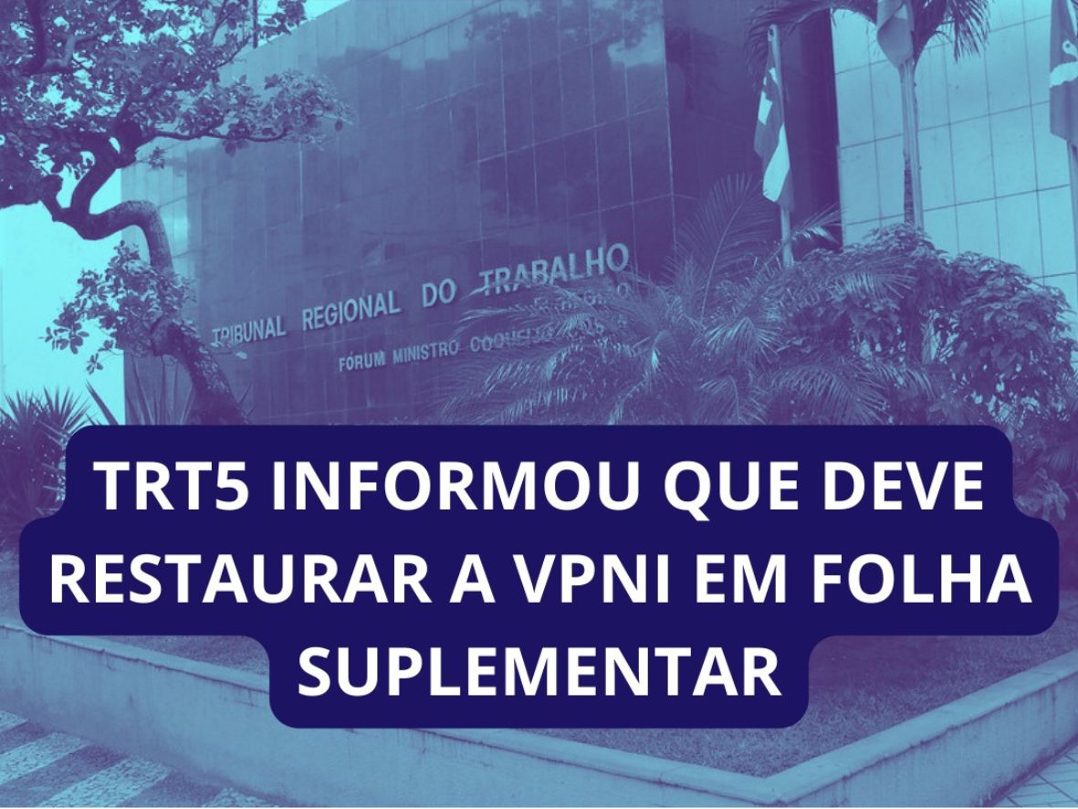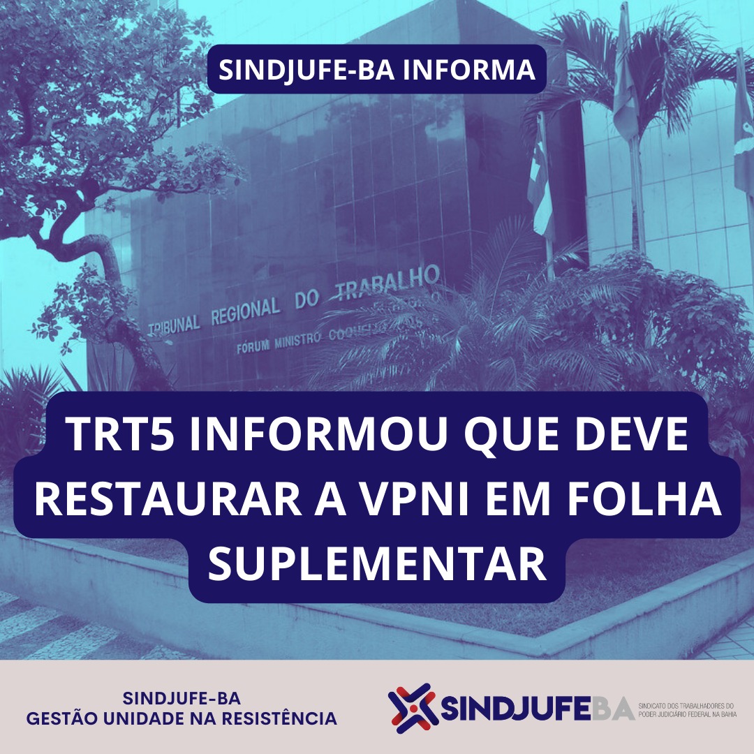 O Tribunal Regional do Trabalho da 5ª Região (TRT5) informou ao Sindjufe-BA na manhã desta quinta-feira (8/2) que deve restaurar o pagamento dos Quintos em folha suplementar.
