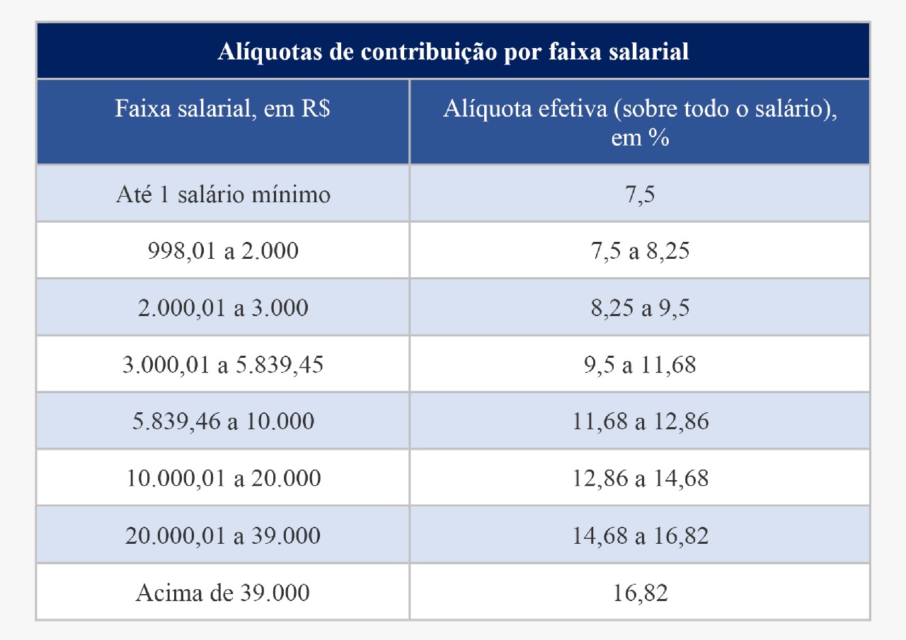 As novas alíquotas efetivas serão as seguintes, de acordo com a faixa de renda, do servidor, do aposentado ou do pensionista: