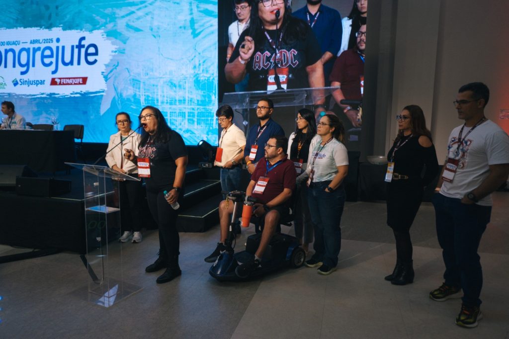 Após a votação e deliberação das propostas de pauta de reivindicações, na tarde desta terça-feira (30), os(as) participantes do 12º Congrejufe conheceram os candidatos das chapas que disputam a composição da diretoria executiva e do conselho fiscal.