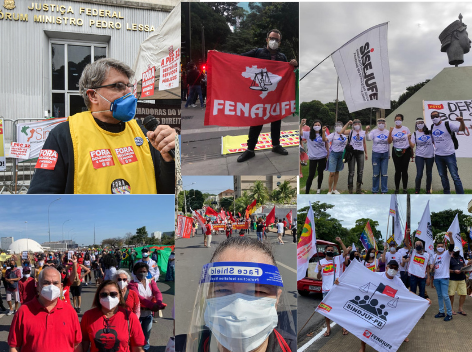 Os coordenadores da Fenajufe, Evilásio Dantas, Fabiano dos Santos, Juscileide Rondon, Lucena Pacheco, Luiz Cláudio Correa, Roberto Policarpo, Ramiro López, e Thiago Duarte e seus sindicatos de base se fizeram presentes nas atividades em seus estados e no Distrito Federal.