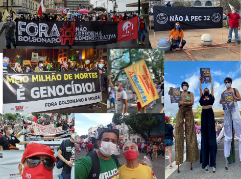 Juntos se somaram aos milhares de manifestantes que foram às ruas demonstrar indignação e repúdio com as atrocidades sociais impressas pelo governo irresponsável e inconsequente de Bolsonaro, que tende a piorar com a destruição do funcionalismo público almejado por ele com a pretensa Reforma Administrativa.