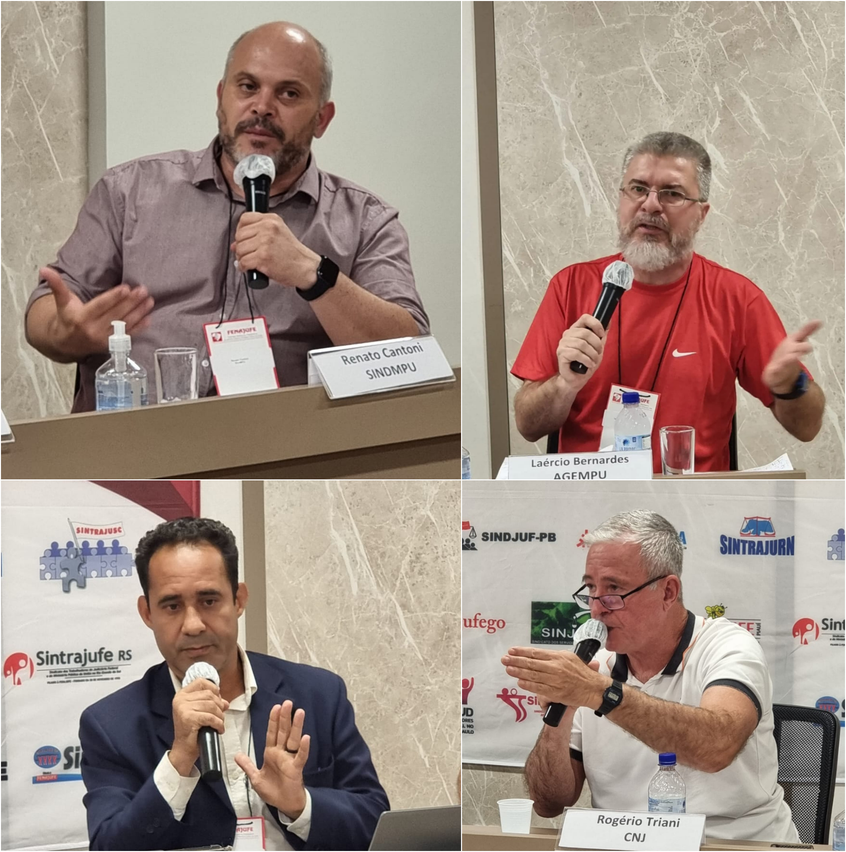 Para iniciar as dicussões temáticas Rogério Triani, chefe de segurança do Conselho Nacional de Justiça (CNJ) e Renato Cantoni do Sindicato dos Servidores do Miistério Público (SindMpu)dividiram a mesa sobre condições de trabalho.
