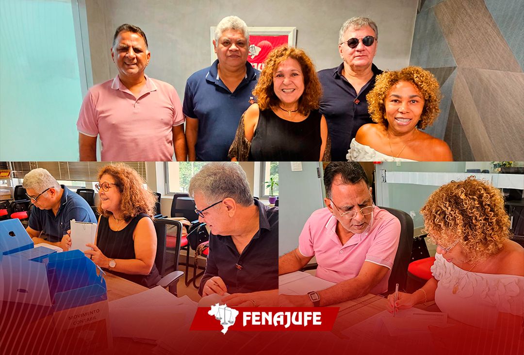 Participaram as conselheiras Mônica Genú Soares (Sindjuf-PA/AP) e Maria Ires Lacerda (Sintrajud/SP) e os conselheiros Elôngio Moreira dos Santos (Sinjeam/AM), Kelson Nogueira Guarines (Sintrajurn/RN) e Nelson da Costa Santos Neto (Sitraemg/MG).