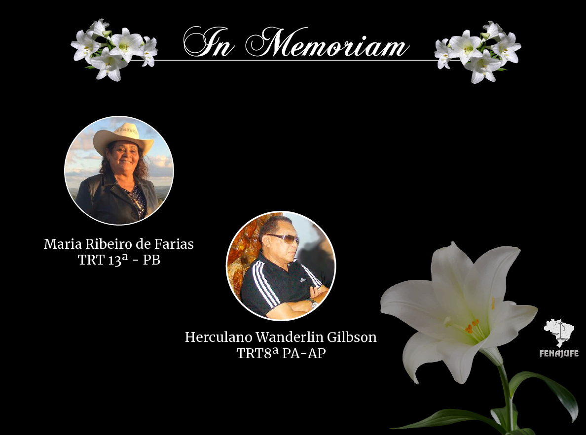 Desta vez vamos registrar a morte da servidora aposentada do Tribunal Regional do Trabalho da Paraíba (TRT 13ª) Maria Ribeiro de Farias. A aposentada era figura conhecida da militância junto à categoria e foi lotada também no Tribunal Superior do Trabalho(TST). Maria participava todos os anos da Olimpíada Nacional da Justiça do Trabalho, onde disputava pela modalidade Vôlei. O tribunal Regional do Trabalho do Pará/ Amapá ( TRT 8ª), perdeu mais um servidor do quadro. Herculano Wanderlin Gibson, faleceu no dia 11 de junho. Ele também era aposentado e integrou a direção do Sindijuf-PAAP por várias gestões. Sua última atuação no sindicato foi como Coordenador de Formação Sindical na diretoria eleita com mandato de 2016 a 2019.