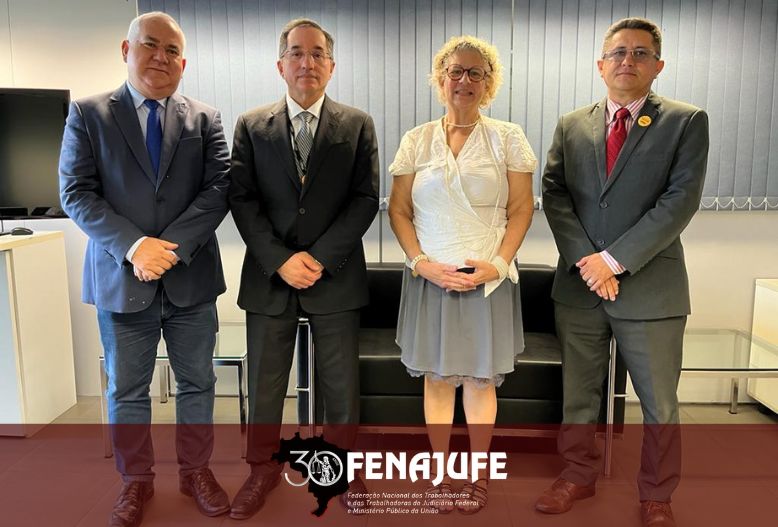 A Fenajufe foi recebida na manhã desta segunda-feira (6) pelo diretor-geral do Supremo Tribunal Federal (STF), Miguel Ricardo de Oliveira Piazzi, e levou demandas importantes e urgentes da categoria — como a questão dos quintos; da retroatividade dos auxílios alimentação e pré-escolar; Fórum Permanente de Gestão da Carreira dos Servidores do PJU no Conselho Nacional de Justiça (CNJ); e polícia judicial.
