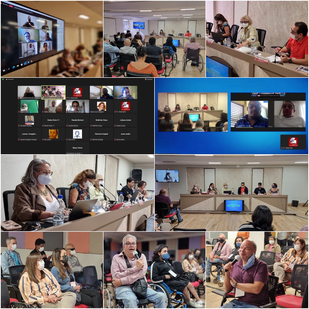No início dos trabalhos do 1º Encontro Nacional da Fenajufe de Pessoas com Deficiência, os participantes debateram acessibilidade e inclusão para as servidoras e servidores PcD do PJU e MPU. O encontro nacional, em formato híbrido, acontece neste fim de semana em Brasília, sendo o presencial no auditório da nova sede da Federação e, no virtual, pela plataforma Zoom.