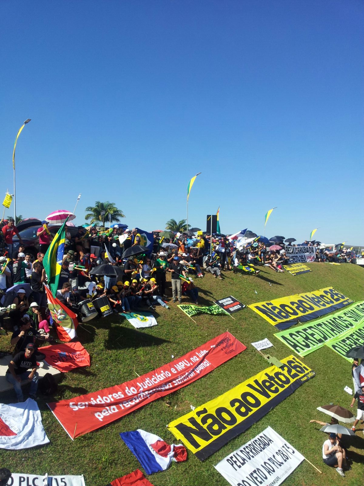 Mesmo com o encerramento da sessão do Congresso Nacional sem analisar o veto ao PLC 28/2015, os servidores não diminuíram a pressão sobre o parlamento. Após se concentrarem no gramado em frente ao Congresso Nacional, eles saíram em marcha pelo Eixo Monumental.
