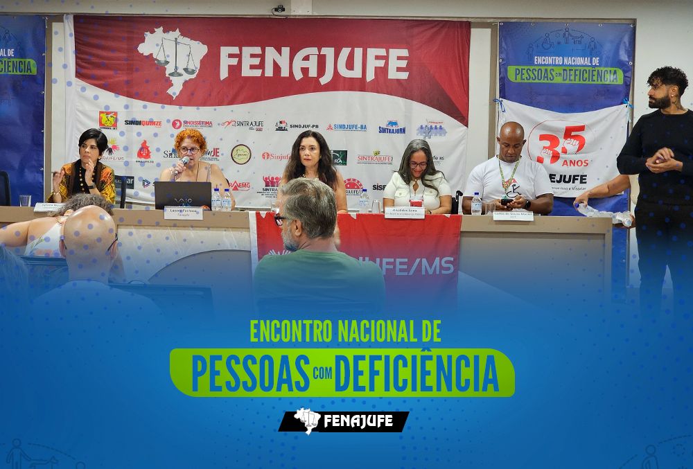 A Fenajufe e os sindicatos de base iniciaram, na manhã deste sábado (21), o 2º Encontro Nacional de Pessoas com Deficiência (PCD) do PJU e MPU, em formato híbrido. O encontro ocorre neste fim de semana na sede da Federação, em Brasília. Na pauta dessa primeira etapa, os painéis trataram das políticas de acessibilidade e participação das pessoas com deficiência no processo eleitoral.