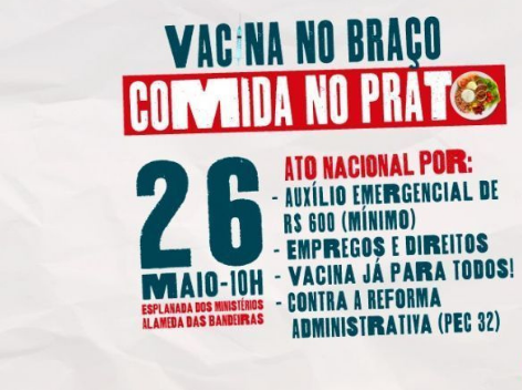 O ato articulado pelas Centrais e movimentos sociais, será principalmente contra a fome, e pelo retorno do auxílio emergencial no valor de R$600 reais.  A proposta é chamar atenção para a grande parte da população que está vivendo situação dramática de miserabilidade acentuada com a pandemia de Covid – 19.