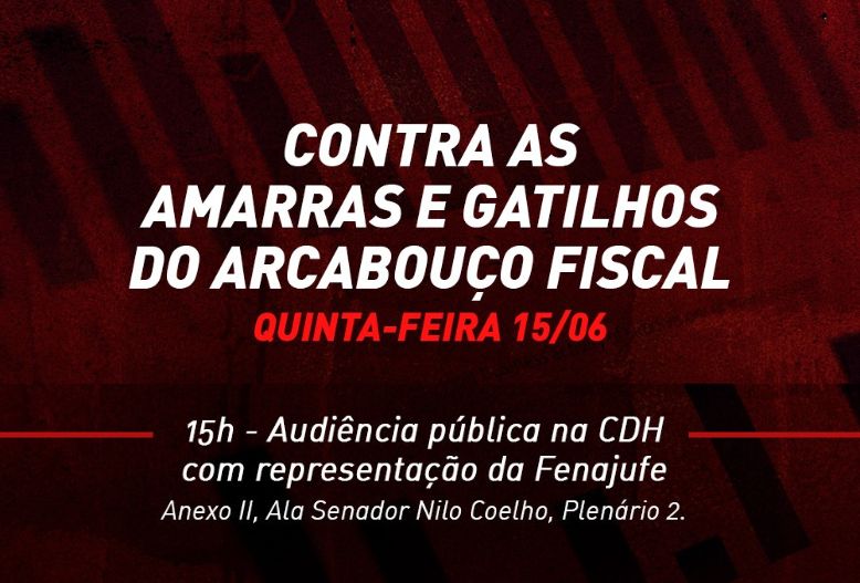 A Fenajufe participa, na tarde desta quinta-feira (15), de audiência pública no Senado Federal sobre o arcabouço fiscal PLP 93/2023 (Projeto de Lei Complementar). O debate acontece na Comissão de Direitos Humanos e Legislação Participativa – CDH. O coordenador Thiago Duarte representa a Federação. Acompanhe: