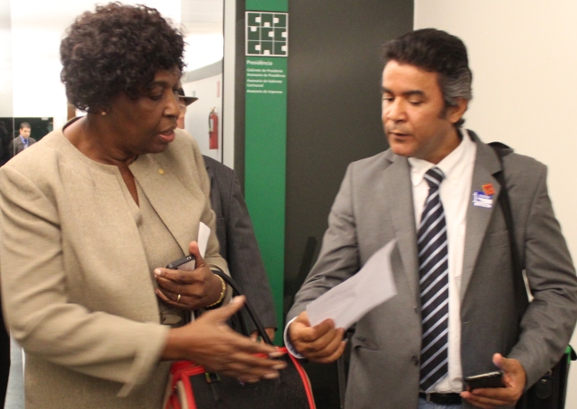 Apesar de não ter sido apreciado o veto, os diretores da Fenajufe, Adilson Rodrigues, João Evangelista e João Batista, acompanhados do diretor do Sintrajud/SP, Antonio Melquiades (Melqui), passaram a tarde toda desta última terça feira no Congresso, entregando carta elaborada pela federação e conversando com os líderes partidários, deputados e senadores sobre a necessidade e importância da derrubada do veto presidencial ao mandato classista remunerado, que configura manifesta restrição ao pleno direito de organização e atuação