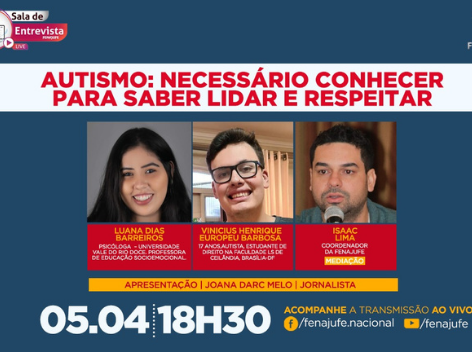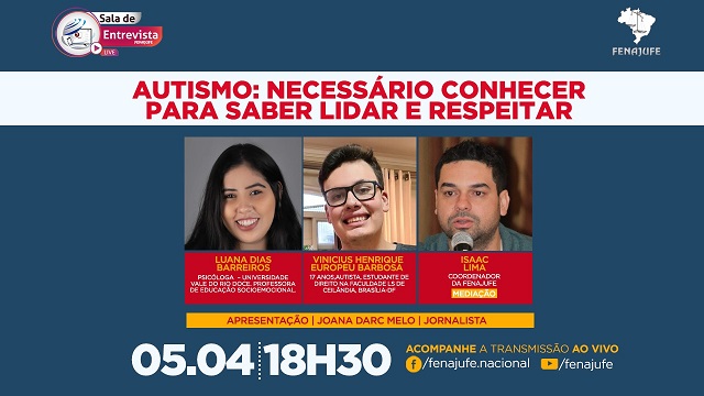 A mediação ficará a cargo do coordenador de Comunicação e Imprensa da Fenajufe, Isaac Lima, por sua sensibilidade ao tema por ser pai de filho autista.