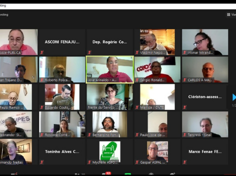 Os coordenadores Roberto Policarpo e Fernando Freitas participaram de reunião da Frente Parlamentar Mista do Serviço público na tarde de segunda feira (26). O encontro acontece semanalmente de forma virtual e além das entidades, a reunião teve a participação dos coordenadores da Frente, os deputados Paulo Ramos (PDT/RJ) e Rogério Correia (PT/MG).