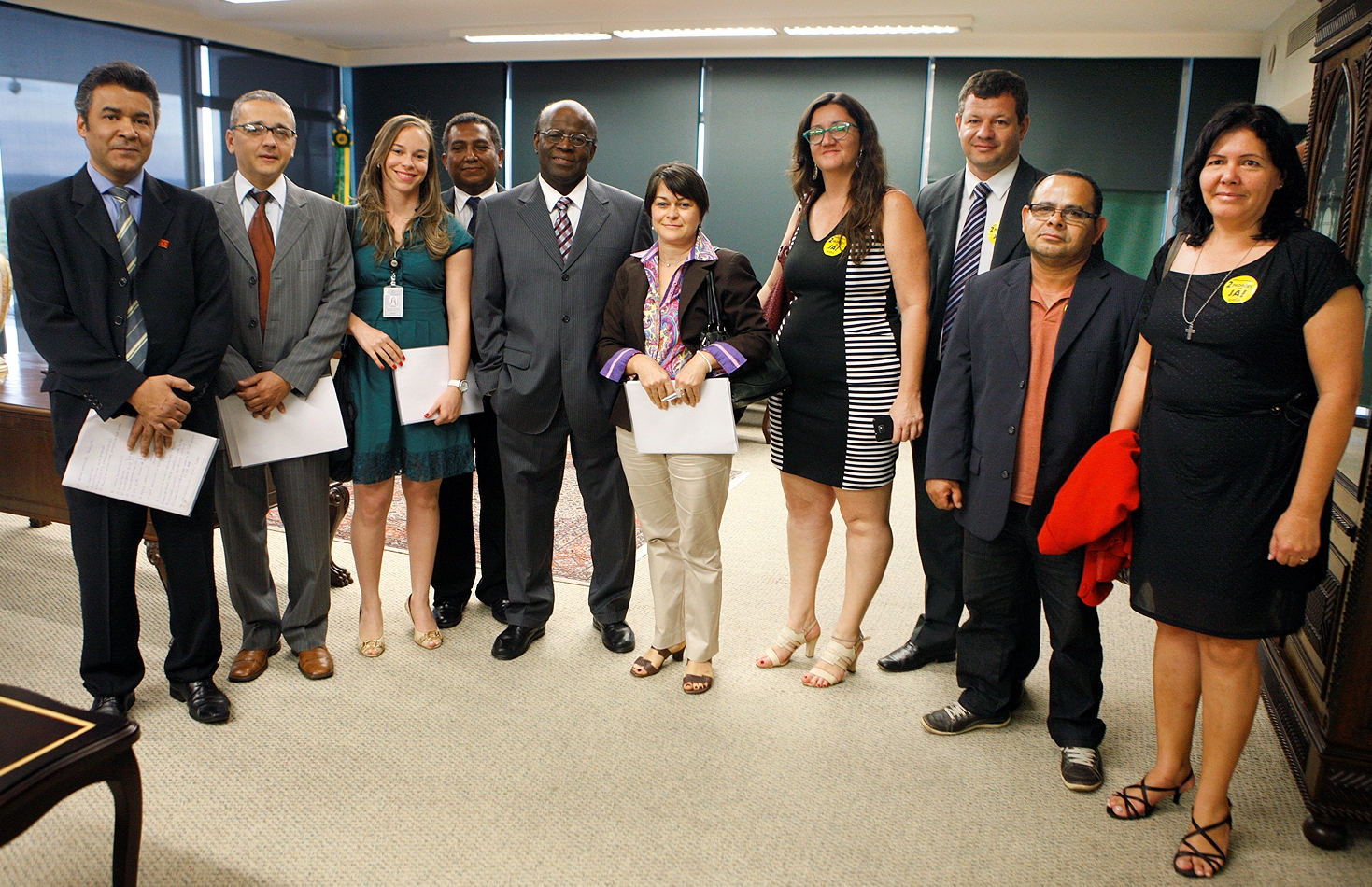 Na segunda-feira (26/08), os coordenadores da Fenajufe, Adilson Rodrigues, Eugênia Lacerda, Mara Weber e Ramiro López, reuniram-se com o presidente do STF (Supremo Tribunal Federal) e CNJ (Conselho Nacional de Justiça), ministro Joaquim Barbosa. Na audiência, foi apresentada a nova direção da Federação e o próprio presidente colocou que conhece a estrutura da Federação e sua representatividade.