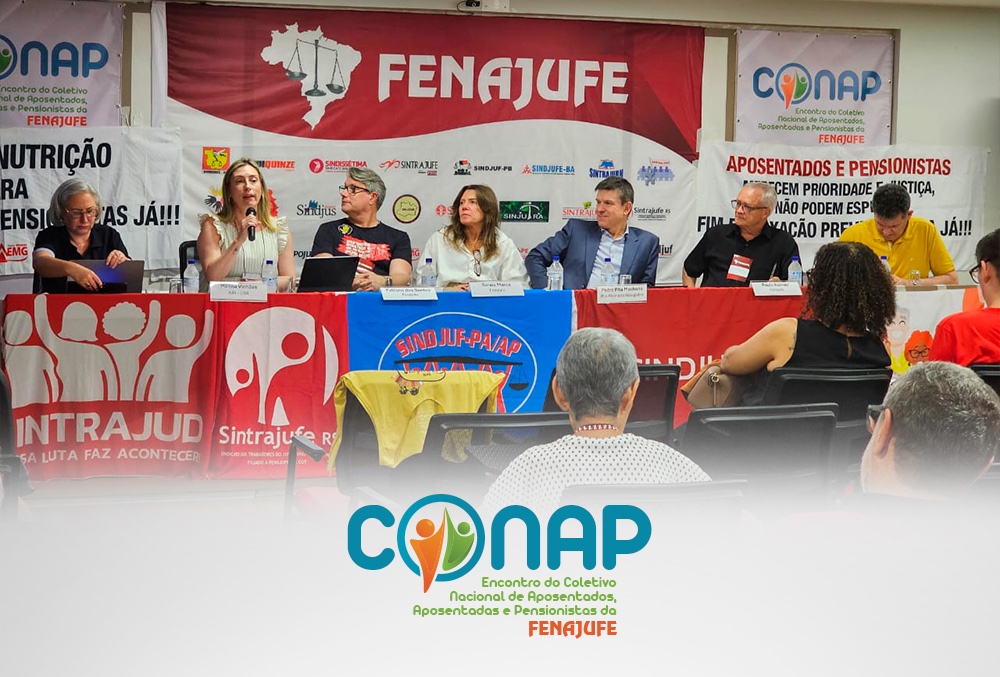 Os debates do Encontro do Coletivo Nacional dos Aposentados, Aposentadas e Pensionistas da Fenajufe (Conap) continuaram a todo vapor na tarde desse sábado (14).Entre os principais temas abordados nas palestras, estão os aspectos jurídicos e atuais sobre aposentadoria; as reformas administrativas e previdenciárias e o impacto na vida das servidoras e servidores; a violência contra pessoa idosa e o fim do confisco previdenciário nas aposentadorias e pensões do serviço público.