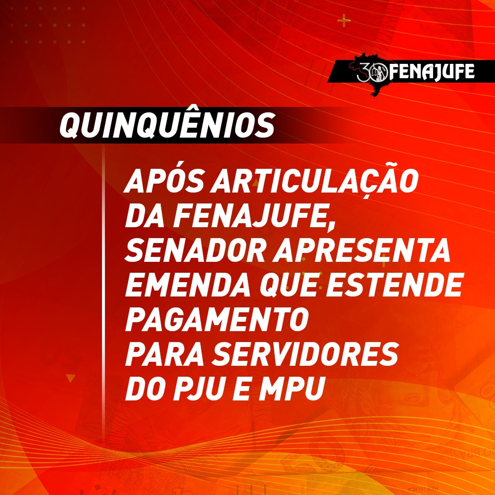 A iniciativa do senador é resultado de mobilização incansável da Federação que busca igualdade de direitos para a categoria, uma vez que no texto original da proposição batizada de “PEC dos Juízes”, apenas magistrados e magistradas têm direito ao um acréscimo de 5% nos salários a cada cinco anos (quinquênios) no exercício das funções, deixando de fora os servidores.