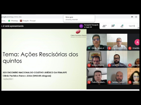 Diante das várias demandas de interesse de toda a categoria apresentadas e ao tempo exíguo, as discussões do Coletivo Jurídico continuarão no próximo dia 30. Na ocasião serão pontuados novos temas como horas extras na Justiça Eleitoral, manutenção do auxílio saúde em virtude da implantação da autogestão no Judiciário Federal (resoluções CNJ e CJF),Teletrabalho e Trabalho remoto, 13%, entre outros.