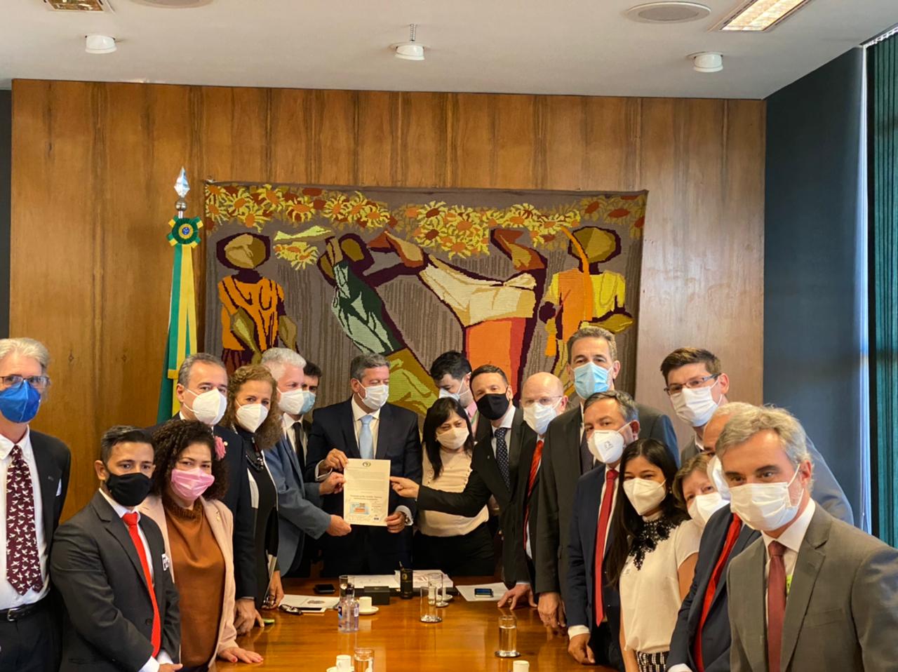 Os representantes das entidades entregaram ao presidente da casa o abaixo assinado reivindicando pausa no andamento da Reforma Administrativa. É consenso dos dirigentes que a pausa na tramitação, é o mínimo de respeito que o governo deve ter com a população brasileira que já conta com quase 480 mil mortos por Covid-19.