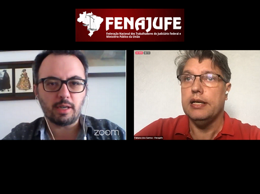 Após as palestras, o espaço foi destinado às entidades do Fonasefe para discussão dos problemas de cada segmento. A Fenajufe foi representada pelos coordenadores Fabiano dos Santos e Thiago Duarte.