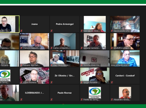 Os coordenadores Fábiano dos Santos e Roberto Policarpo participaram de reunião da Frente Parlamentar do Serviço Público, na tarde de segunda feira(5). No encontro semanal, o ponto principal da pauta foi as emendas que serão apresentadas pelos partidos para a Comissão Especial da Reforma Administrativa.