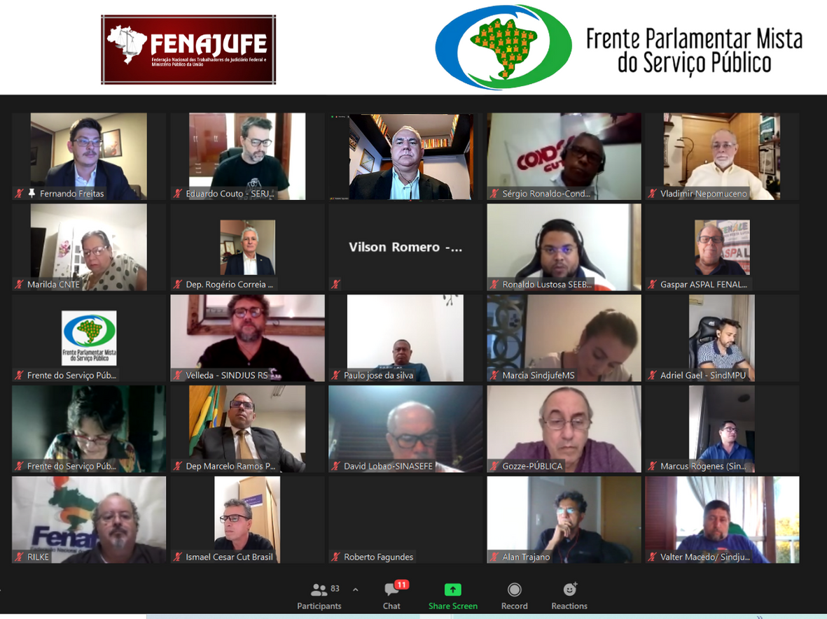 Em uma reunião na tarde desta quinta-feira, 8, a Fenajufe, ao lado da Frente Parlamentar Mista do Serviço Público e de outras entidades que integram a Frente e Centrais Sindicais, levou ao vice-presidente da Câmara dos Deputados, Deputado Marcelo Ramos (PL/AM), o pedido de interlocução junto ao Parlamento, para retirada da reforma Administrativa da pauta dos debates do Congresso Nacional.