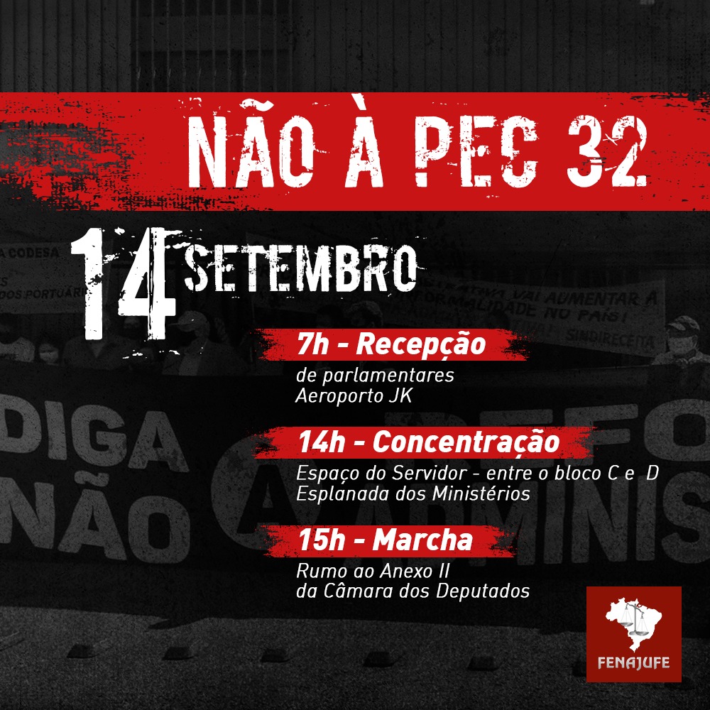 Em seguida, concomitantemente ao trabalho de parte dos dirigentes na Câmara dos Deputados, em abordagem aos deputados e deputadas, as entidades estarão reunidas a partir das 14 horas, no Espaço do Servidor, montado ao lado do Bloco C da Esplanada dos Ministérios. Dali seguem em marcha até o Anexo II da Câmara, onde permanecem mobilizadas.