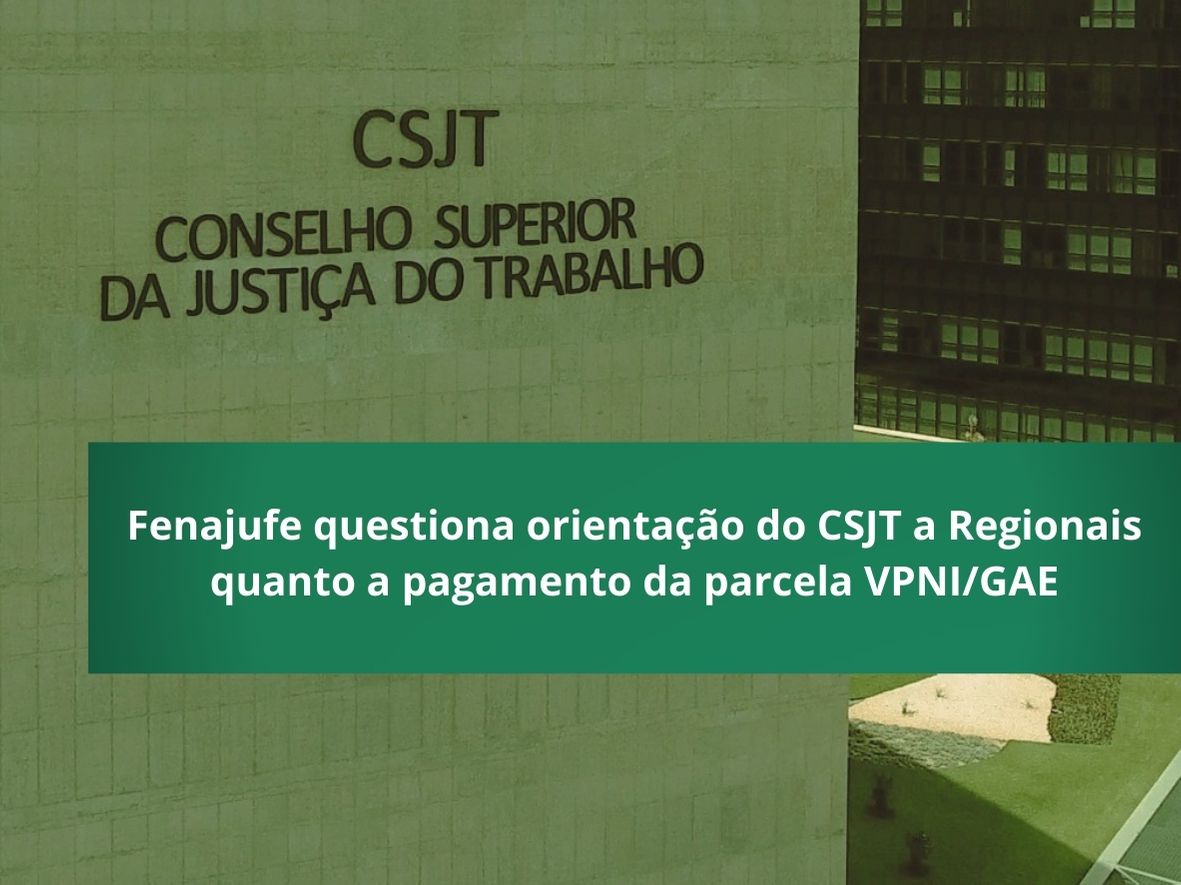 Fenajufe questiona orientação do CSJT quanto a pagamento da parcela VPNI/GAE