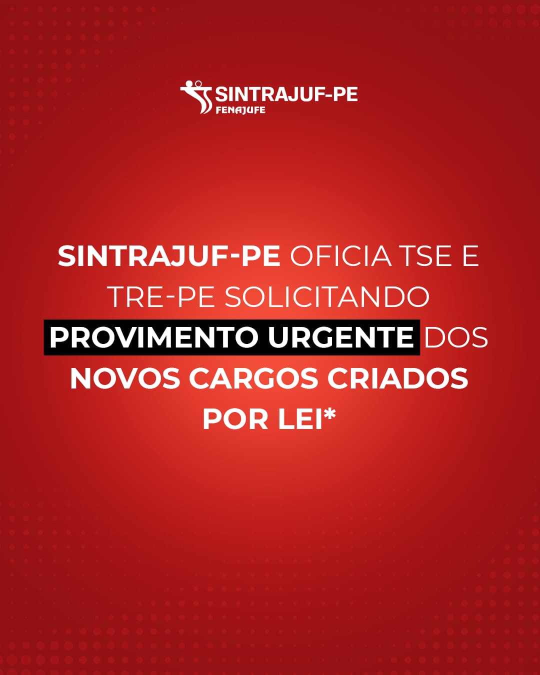 SINTRAJUF-PE oficia TSE e TRE-PE solicitando provimento urgente dos novos cargos criados por lei