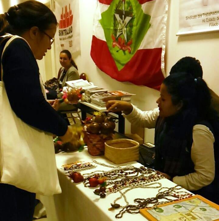 Já é tradição nos Congressos da Fenajufe a distribuição de materiais de sindicatos e venda de livros. Nesta edição mais uma vez foi organizada exposição de fotos para mostrar os fatos mais importantes ao longo da atual gestão, entre os quais a greve de 2015. Na quinta-feira (28/4) os indígenas da Terra Indígena Morro dos Cavalos, localizada em Palhoça, na Grande Florianópolis, também expuseram artesanato, com a presença da cacica da aldeia, Kerexu Yxapyry (Eunice Antunes). A Cooperativa Desacato, de Florianópolis, vendeu camisetas com o registro da luta pela auditoria da dívida pública.