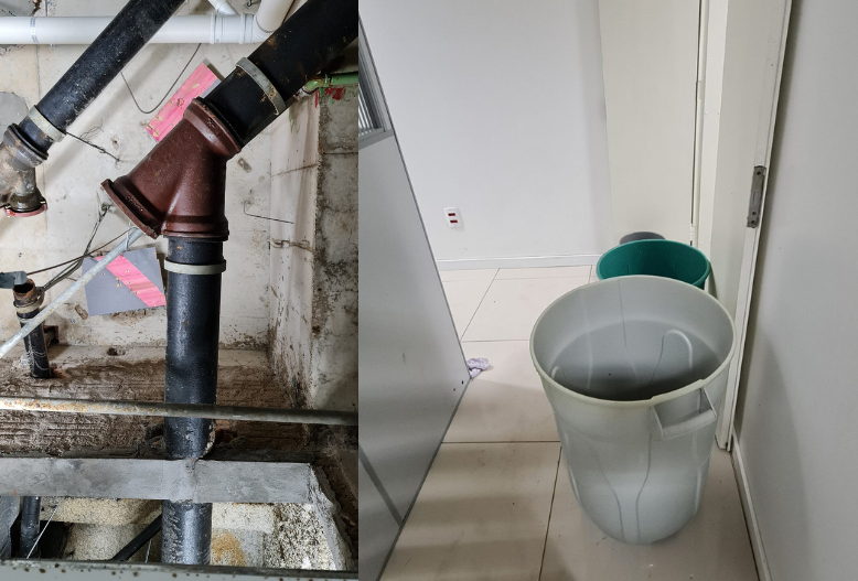 O sindicato foi informado de que, no sábado, 20, houve um problema na rede de esgoto, com um vazamento ainda maior que espalhou dejetos pelos corredores. Uma equipe de empresa de limpeza terceirizada foi enviada ao local; os relatos são de que o cheiro era quase insuportável. Foi assegurado que estava resolvido, mas o novo vazamento na tarde de hoje mostra que não.