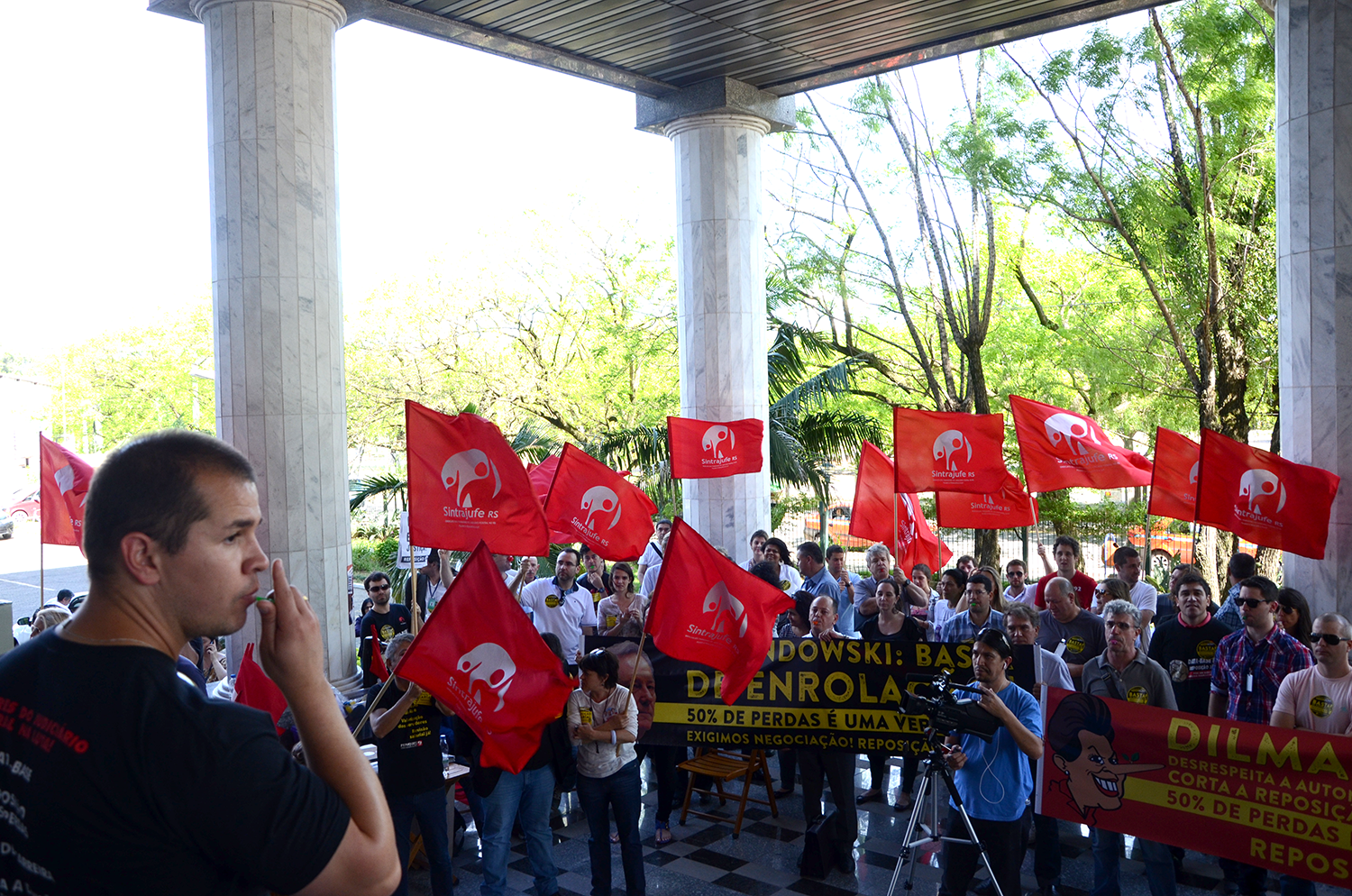 A categoria vem sofrendo os efeitos das perdas salariais que se acumulam há oito anos. O ato público foi para exigir a reposição, mas também, valorização e respeito. Várias intervenções lembraram que a tragédia ocorrida com os colegas de São Paulo é fruto de um sistema perverso, de uma reforma produtiva que está sendo colocada em prática pela cúpula do Judiciário com anuência de administrações locais. Nas falas durante o ato público, foi afirmado que o Judiciário está menos preocupado com a prestação jurisdicional, com o bom atendimento à população, e mais interessado nas metas. Os processos não são mais que meros números, o mesmo acontecendo com os servidores e os casos de adoecimento e até mesmo morte, que viram mera estatística.