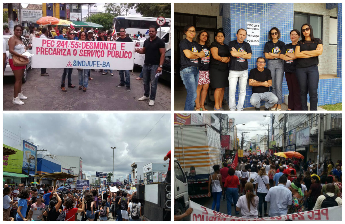 Dia de mobilização intensa contra a PEC 241 em todo o estado da Bahia, nesta sexta-feira (11). A data é resultado da articulação de centrais sindicais, movimentos sociais, movimento estudantil e sindicatos, em todo o Brasil, mobilizados contra a PEC 241, contra a reforma da previdência e ataques as leis trabalhistas.