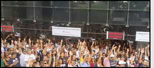 Em uma mobilização que se iniciou logo às 7h da manhã desta quarta-feira (10), os servidores do TRT, JF e TRE de Goiás deram mostras que estão fazendo por merecer a aprovação do PLC 28/2015. Aos poucos foram chegando cada vez mais servidores, ao ponto de juntarem 600 servidores para então realizarem uma passeata pelas ruas próximas ao prédio sede do TRT-GO, local da concentração. Antes da caminhada, que fechou o trânsito nas imediações, o Hino Nacional foi entoado em alto e bom som.